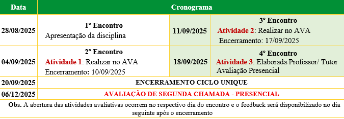 Calendário do Curso