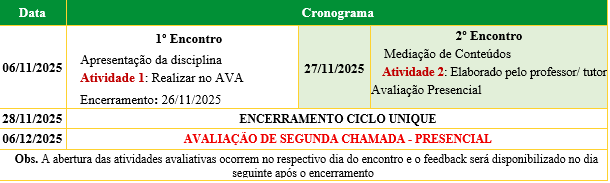 Calendário do Curso
