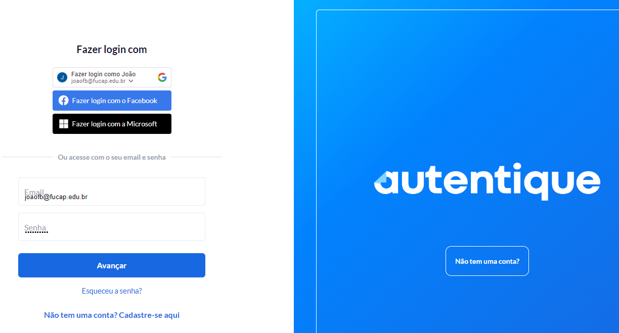 5ª Etapa - Preencher o Termo de Compromisso e Convênio, após enviar o arquivo preenchido no módulo Estágio.6ª Etapa – Assinar o Termo de Compromisso enviado em seu e-mail. Para assinar basta acessar o site: https://painel.autentique.com.br/entrar, clicar no botão Cadastre-se. Caso já tenha cadastro, clique na opção Entrar, após opção E-mail.